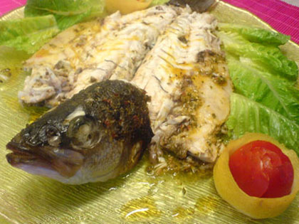 1 κιλό χοντρά φιλέτα λαβράκι, κομμένα σε φέτες