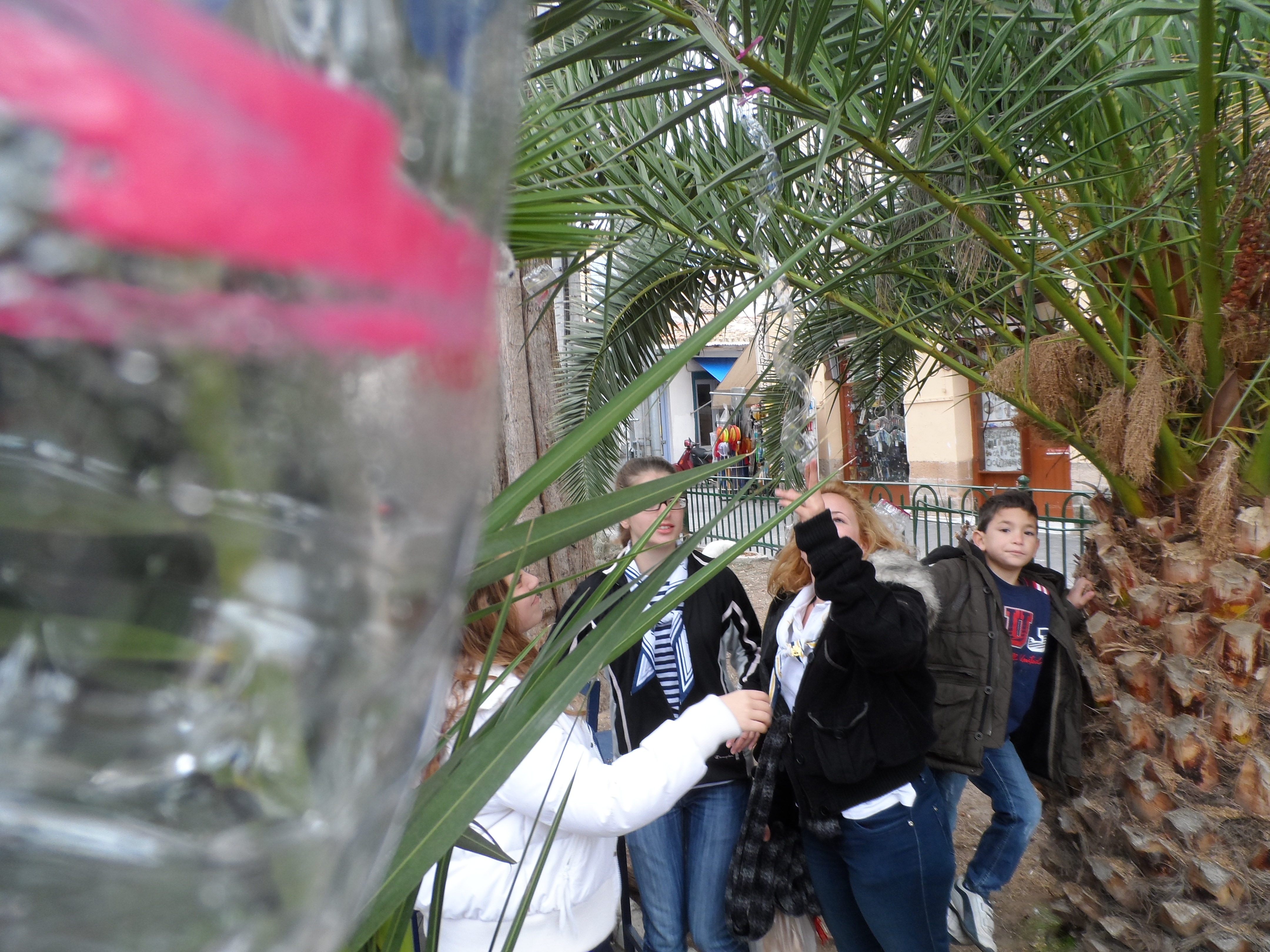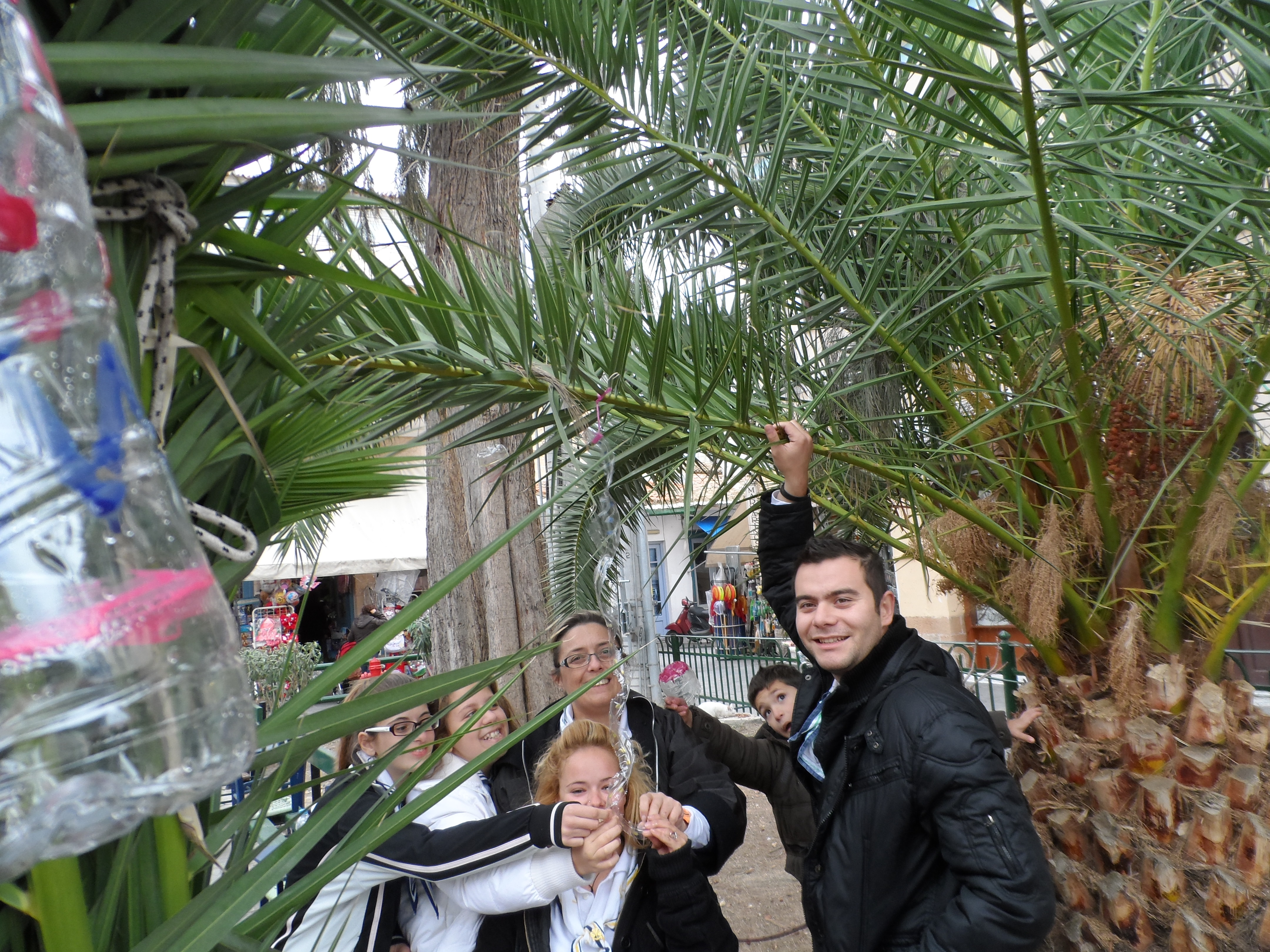 Η πρόσκληση έλεγε: Παιδιά ελάτε το Σάββατο 8 Δεκεμβρίου στις 10 το πρωί με το ψαλίδι σας και 4-5 άδεια μικρά μπουκαλάκια νερού να φτιάξουμε Χριστουγεννιάτικα στολίδια και να στολίσουμε τα δέντρα στα πάρκα της πλατείας Εθνεγερσίας (Ηρώο) και δίπλα στη Παναγίτσα.