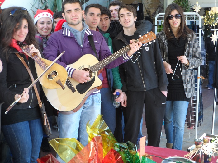 ”Τέρμα οι αντιπαλότητες”, χρονιάρες μέρες, είπαν-μέσα τους-τα παιδιά του Γενικού Λυκείου Αίγινας και κατηφόρισαν προς το παζάρι του ΕΠΑΛ κατά Χέβεν μεριά, να τους ”την πούνε” (σόρρυ, να ΤΑ πούνε). Όντως  τα  κάλαντα τους ήταν αβάσταχτα μελωδικά .Με μπροστάρη τη διάσημη πλέον (και λόγω του σχετικού άρθρου της Τόνιας Ζ. σε αδελφό έντυπο) λυράρισα Μαρδικούλα, έναν θηλυκό Ξυλούρη, με κιθαρίστες ,τριγωνάκια και άλλα σύνεργα, σκόρπισαν απλόχερα μουσική και παράδοση στην μοναδική παραλία μας…
