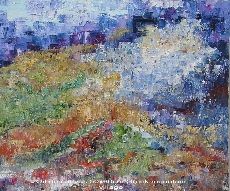 Εικαστικά, ασχολείται εξίσου με την αφηρημένη τέχνη, αλλά και τοπία και προσωπογραφίες και ρεαλιστικά και αφηρημένα.
