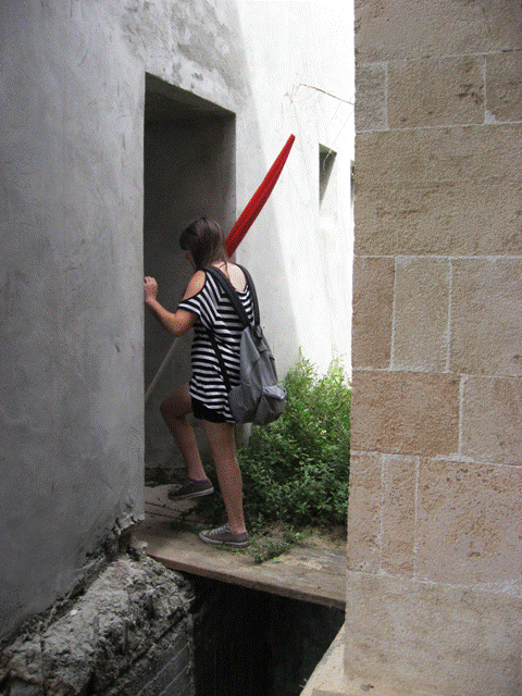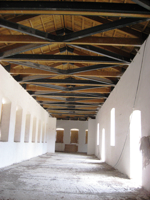 Εργασίες ανακαίνισης που ξεκίνησαν και ποτέ δεν τέλειωσαν. Απομεινάρια σκαλωσιών, ένα καρότσι μεταφοράς και βουναλάκια καυτσουλιές, τα δείγματα πως πρόσφατα πέρασαν μάστορες αλλά έφυγαν βιαστικά και ήρθαν τα περιστέρια και κούρνιασαν