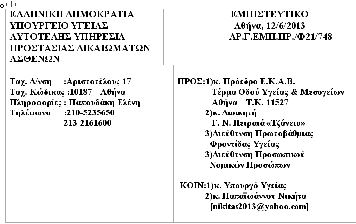 S.O.S ΑΠΟ ΠΟΛΙΤΕΣ ΓΙΑ ΤΟ ΚΕΝΤΡΟ ΥΓΕΙΑΣ-ΕΠΙΣΤΟΛΗ ΣΤΟΝ ΥΠΟΥΡΓΟ