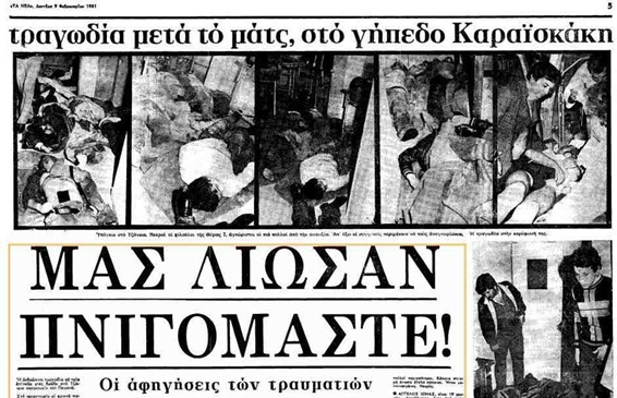 Μετά, ο πόνος έγινε “βουβός”, αλλά για τις οικογένειες των παιδιών που χάθηκαν εκείνο το απόγευμα της 8/2/1981 μετά το ματς του Ολυμπιακού με την ΑΕΚ, δεν πρόκειται να φύγει πότε. Ένα ποδοσφαιρικό παιχνίδι πήγαν να δουν και δεν γύρισαν ποτέ. Έτσι απλά. Γιατί;