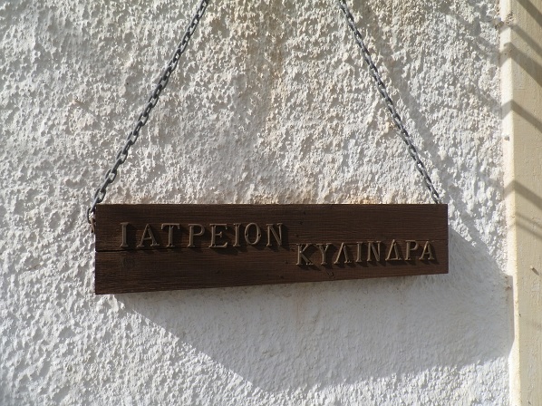 Στο έμπα του χωριού, ένα άλλο κτίσμα, σύγχρονο, τσιμεντένιο, διαστάσεων 2Χ3, έχει τη δική του πόρτα ανοιχτή. Απ’ έξω η χειροποίητη ταμπέλα γράφει: Ιατρείον Κύλινδρα. Γυρνάς το κλειδί και μπαίνεις. Ένα γραφείο, διάφορα διακοσμητικά, ένα όμορφο σιδερένιο κρεββάτι στρωμένο με δαντελένιο κλινοσκέπασμα, το τραπεζάκι δίπλα επίσης στρωμένο με δαντελένιο τραπεζομάντηλο. Ρωτήσαμε κάτοικο του χωριού αν επισκέπτεται ποτέ το ιατρείο γιατρός, μας απάντησε όχι φυσικά, από τότε που καταργήθηκαν οι αγροτικοί γιατροί, “αλλά το κρατάμε καθαρό και περιποιημένο, για την περίπτωση που περάσει ένας ξένος και θελήσει να μείνει – τόσοι μας έρχονται από τα μονοπάτια.”