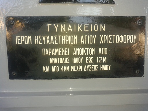 Το ησυχαστήριο του αγίου Χριστοφόρου αποτελεί μια μικρή πνευματική ανάσα μέσα στα όρια της πρωτεύουσας του νησιού. Αν και βρίσκεται κοντά στην πόλη, η ησυχία και η γαλήνη που κυριαρχούν στη φιλόξενη αυλή του μεταφέρουν τον επισκέπτη από την πολύβουη καθημερινότητα σε άλλα επίπεδα, πνευματικά και ωφέλιμα για την ψυχή. Η αβραμιαία φιλοξενία των μοναχών σε συνδυασμό με τη χάρη και την ευλογία του αγίου Χριστοφόρου καθιστούν το ησυχαστήριο μια από τις πλέον αγαπητές επιλογές των Αιγινητών για πνευματική περισυλλογή και έκφραση της αγάπης προς τον Θεό.