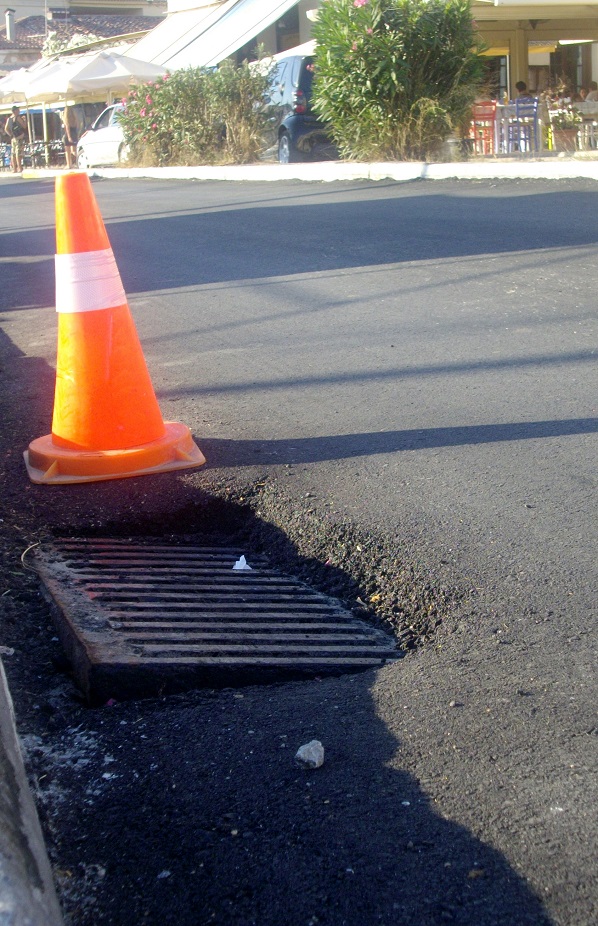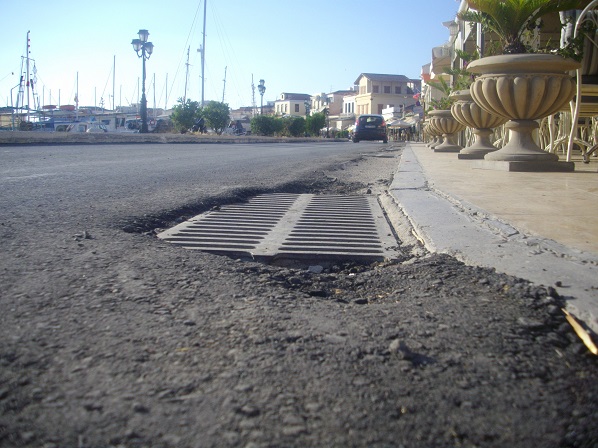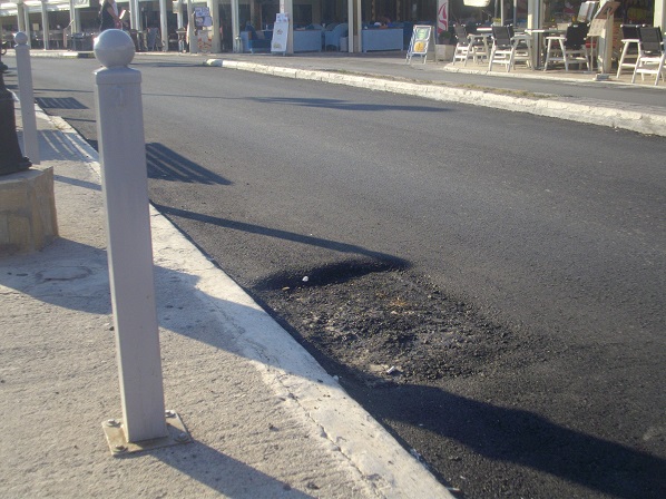 1. Η ρύση προς τα παραλιακά μαγαζιά των όμβριων απο την διαχωριστικη νησίδα, σε ορισμενα μέρη είναι εμφανής.