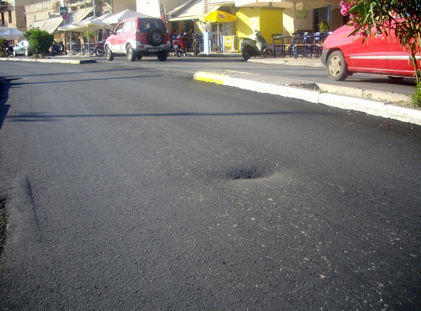4. Όπου έχει γίνει ξύσιμο της παλαιάς ασφάλτου φαίνεται πως δεν θα μπουν από κάτω κάποιες ποσότητες 3α κατά μέγεθος ώστε να απορροφούνται τα νερά.