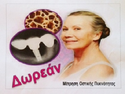 Την Παρασκευή 18 Ιουλίου, στο ιδιωτικό ιατρείο της ορθοπεδικού χειρουργού κας Μαρκέλλας Χρυσάγη, Πάροδος Οινώνης – Αίγινα, θα πραγματοποιηθεί δωρεάν εξέταση οστεοπόρωσης, για τους πολίτες της Αίγινας,