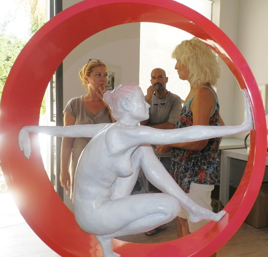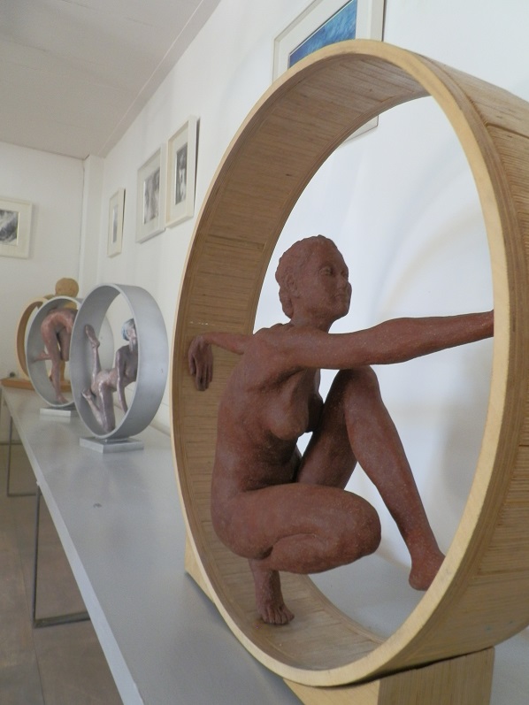 Η δεύτερη, της οποίας το στήσιμο “παρακολουθήσαμε”, είναι μια παρουσίαση της δουλειάς της γλύπτριας Helen Mudie Ioannidou. Σημαντική δημιουργός, και ταυτόχρονα καθημερινή κι αγαπημένη φυσιογνωμία του νησιού, η Helen μας εντυπωσιάζει πάντα με την πλαστικότητα, αλλά και την αίσθηση του ανθρώπινου, του τρωτού, που εμφυσσεί στα πανέμορφα γλυπτά της.