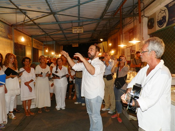 Όταν οι χορωδοί συναντούν τους κεραμίστες στην ψαραγορά της Αίγινας