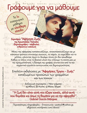 Αύριο Τετάρτη 22 Φεβρουαρίου ξεκινάει στο Floral το σεμινάριο γραφής Αφήγηση Ζωής της δημοσιογράφου και συμβούλου ανθρωπίνων σχέσεων Κρυσταλίας Πατούλη.