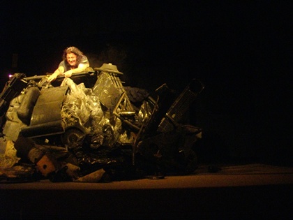 Επί μιάμιση περίπου ώρα, σφηνωμένη στις λαμαρίνες του αυτοκινήτου της ηρωίδας, η ηθοποιός ερμήνευσε την κωμικοτραγική ιστορία μίας γυναίκας κοντά στα πενήντα, η οποία με αφορμή το τροχαίο της ατύχημα αδράχνει την ευκαιρία στην απόλυτη μοναξιά του γκρεμού για να σκεφτεί, να αναθεωρήσει τη μέχρι εκείνη τη στιγμή πορεία της, να κατανοήσει και να δικαιολογήσει τις αντιδράσεις των στενών της συγγενών, αλλά και να σιχτιρίσει την «κακή της ώρα», τον άντρα της… Παρηγοριά της, το αλώβητο στα συνθλιμμένα σίδερα του Fiat, ραδιόφωνο, η μόνη της επαφή με τον έξω κόσμο, η μοναδική της επικοινωνία, αγγελιαφόρος της επικείμενης βροχής. Ένας νεαρός, βουβός επισκέπτης (Νίκος Πιζάνης) θα βρεθεί στο σημείο, ως ο από μηχανής Θεός που θα την σώσει, όμως εκείνος θα τη ληστέψει, για να την αφήσει ξανά αβοήθητη στους καπνούς που τακτικά ξεπηδούν από τα συντρίμμια.