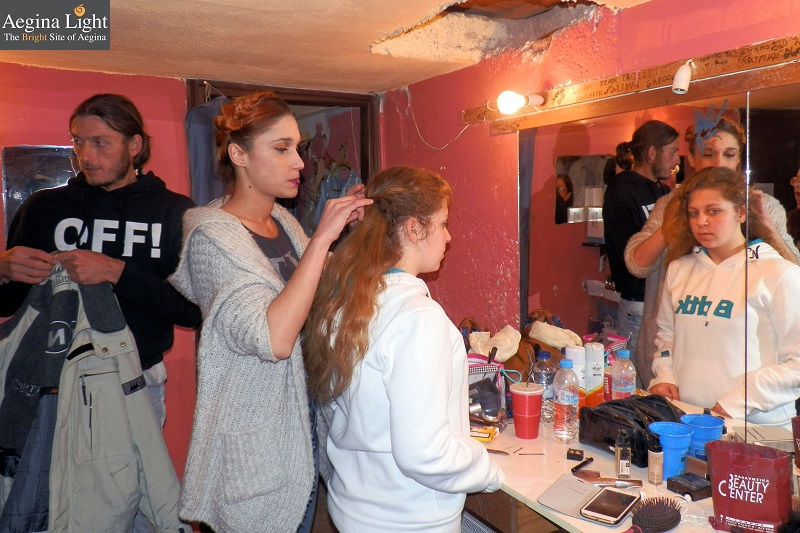 Έτσι, είδαμε το δέσιμο της ομάδας backstage – να πειράζονται, να μακιγιάρει και να φροντίζει ο ένας τον άλλο, την Άννα Γεραλή να τους λέει τα δυο παραπάνω λόγια της τελευταίας στιγμής, που ως τότε δεν είχαν ειπωθεί, και πήραμε και κάποιες δηλώσεις τους για την εμπειρία, που τις μοιραζόμαστε μαζί σας.