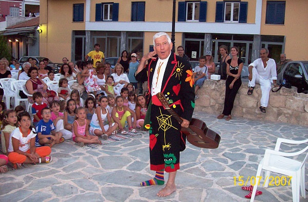 Δεν θα ξεχάσω ένα βράδυ, που ο καλλιτέχνης έδωσε παράσταση, ντυμένος κλόουν, για τα παιδιά, στην πλατεία μπροστά από τον πύργο του Μάρκελλου, με σκοπό να ενισχυθεί οικονομικά μια οικογένεια αλλοδαπών. Απολαυστικός, ακούραστος, ευρηματικός, πιο παιδί κι απ’ τα παιδιά, κράτησε γονείς και παιδιά μέχρι αργά. Το προχωρημένο σκοτάδι δεν ήταν ικανό να βάλει τέλος στη γιορτή, γιατί το φως που εξέπεμπε ο καλλιτέχνης κλόουν το διαπερνούσε ! . .