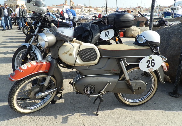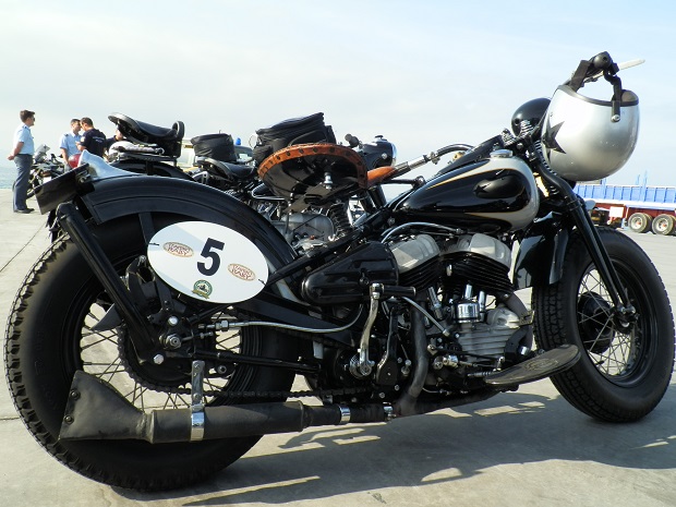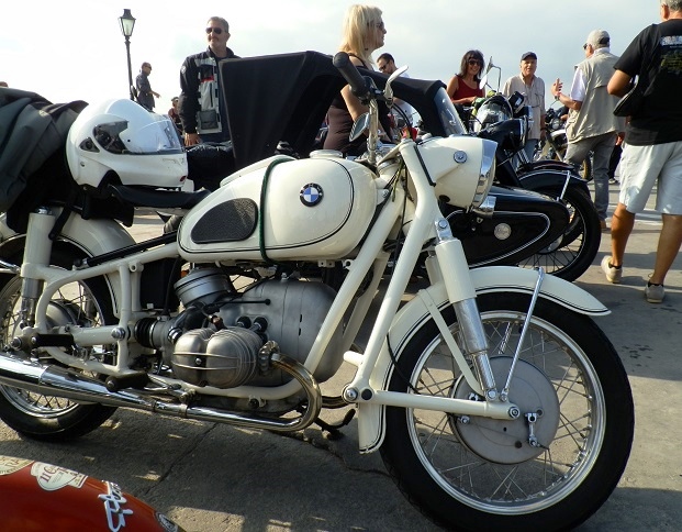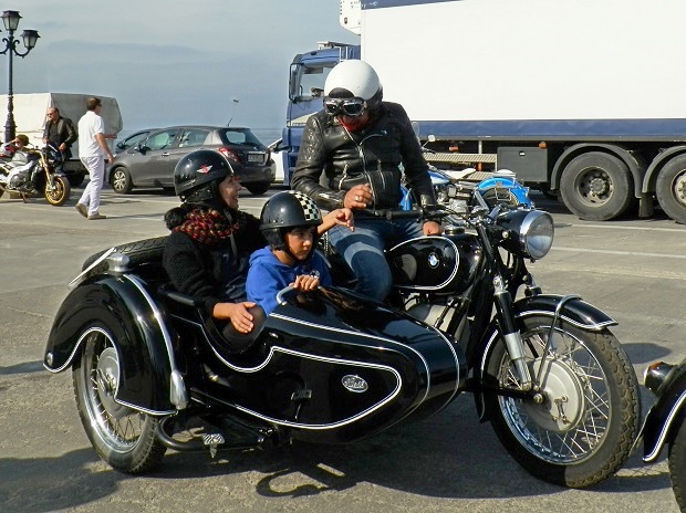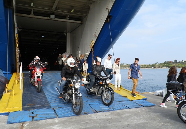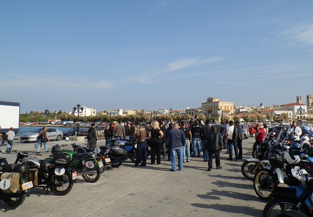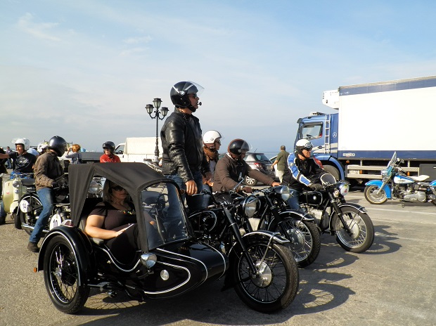 Τα 80 δίτροχα έργα τέχνης αποβιβάστηκαν από το πλοίο και παρατάχθηκαν στο λιμάνι. Νίκελ και χρώμια, γυαλιστερά γερά μέταλλα και πλαίσια,  μανιβέλες, ακτίνες, τηλεσκοπικά πιρούνια, άκαμπτες αναρτήσεις, ελατήρια κάτω από τη σέλα, πλαϊνά καλάθια, μικρές και μεγάλες ζελατίνες, η κάθε μια με τις δικές της ιδιαιτερότητες. Ιταλίδες Ducati, Triumph, Moto Guzzi, Vespa, αγγλίδες BSA, Norton, γερμανίδες BMW, Zundapp, αμερικανίδες  Harley-Davidson, γιαπωνέζες Honda, Kawasaki, στρατιωτικά μοντέλα και γηραιότερη όλων η γερμανική Zundapp του 1933 με το Νο 1.