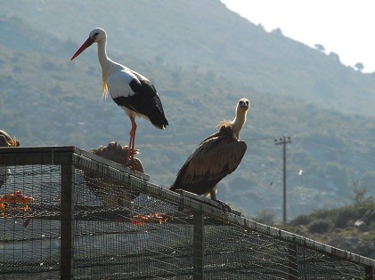 Αυτή την περίοδο που οι φωλιές των πελαργών μας (9 τον αριθμό) είναι ανενεργές, συχνά χρησιμοποιούνται και από τα Όρνια  σαν … καθιστικά, εφόσον φυσικά συμφωνούν και οι οικοδεσπότες Πελαργοί.  Διαφορετικά, οι νεαροί και άπειροι γύπες «πείθονται» εύκολα από τα… επιχειρήματα των Πελαργών να αφήσουν ήσυχη τη φωλιά τους όταν θέλουν οι ίδιοι να καθίσουν εκεί.