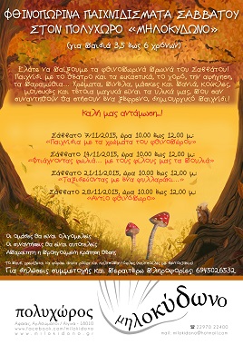 • Σάββατο 28/11/2015, ώρα 10.00 έως 12.00 μ.: «Αντίο φθινόπωρο!»