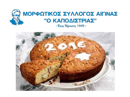 Σας καλούμε στη κοπή της πρωτοχρονιάτικης πίτας του Μορφωτικού Συλλόγου Αίγινας,