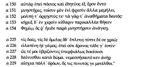 στου Φήμιου τα χέρια, που τραγουδούσε στους μνηστήρες από ανάγκη».
