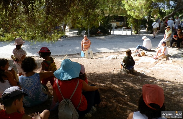 Σάββατο πρωί στις 10.00 οι μικροί μαθητές μαζί με τους γονείς τους περιηγήθηκαν από τον κ. Σταυρόπουλο, με την μεταδοτικότητα του εκπαιδευτικού, στον μαγευτικό κόσμο της αρχαιότητας, στον μύθο της Αφαίας, στην αρχιτεκτονική και τα μέλη του Ναού και στα εκθέματα του μουσείου.