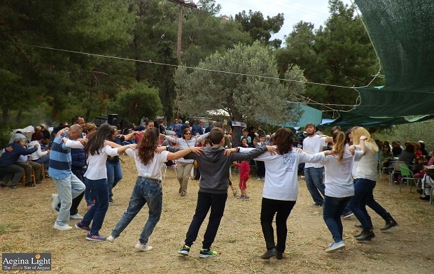 Στους πρόποδες του λόφου της Παλιαχώρας, της μεσαιωνικής πρωτεύουσας του νησιού, ο Μορφωτικός Σύλλογος Αίγινας “Ο Καποδίστριας”. αναβίωσε και φέτος το αιγινήτικο έθιμο του Χορού της Λαμπρής.