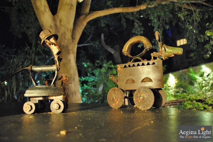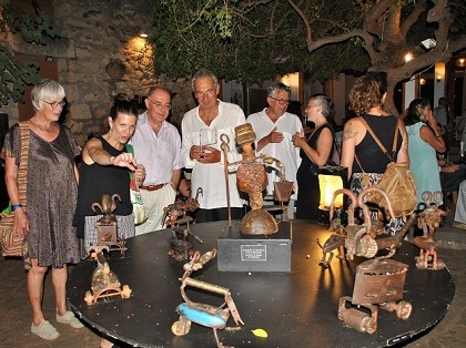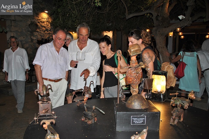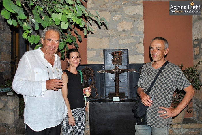 Πολύ φίλοι του Ζαν Ζακ, ανάμεσά τους ο Δημοτικός Σύμβουλος Αίγινας ο κ.Γιώργος Τσατήρης, καλλιτέχνες και Γάλλοι συμπατριώτες του που μένουν στην Αίγινα, βρέθηκαν στον όμορφο κήπο και θαύμασαν την πρωτότυπη αυτή σειρά αλλά και παλαιότερα έργα του που διακοσμούν τον ισόγειο χώρο του ξενοδοχείου.