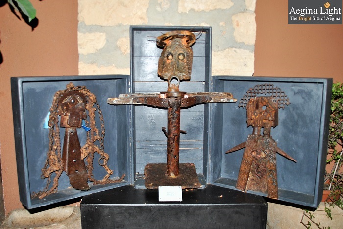 Όλο το κοπάδι, πρόβατα, τράγος, σκύλος και ο Σωκράτης, σε ένα Καρουζέλ που δημιούργησε ο Ζαν Ζακ και μας ξενάγησε στα εγκαίνια της έκθεσης με τίτλο “Σιδ ε ⁄η ρομανία” την Παρασκευή 22 Ιουνίου. Δύο σίδερα που …ξέφυγαν από το κοπάδι δημιούργησαν το θωρηκτό Αβέρωφ. Και ένα φετινό ιδιαίτερο έργο, χωρίς σίδερο, το “Τρίπτυχο”, με τον Εσταυρωμένο στο κέντρο του.
