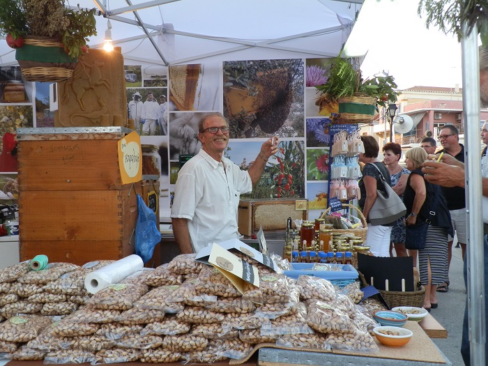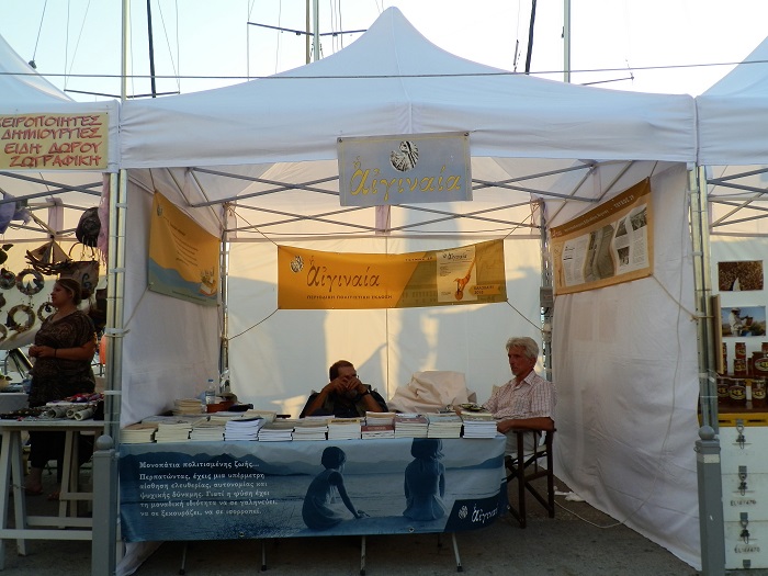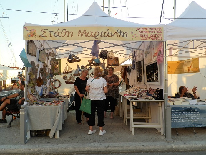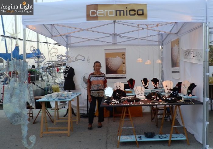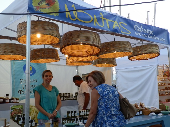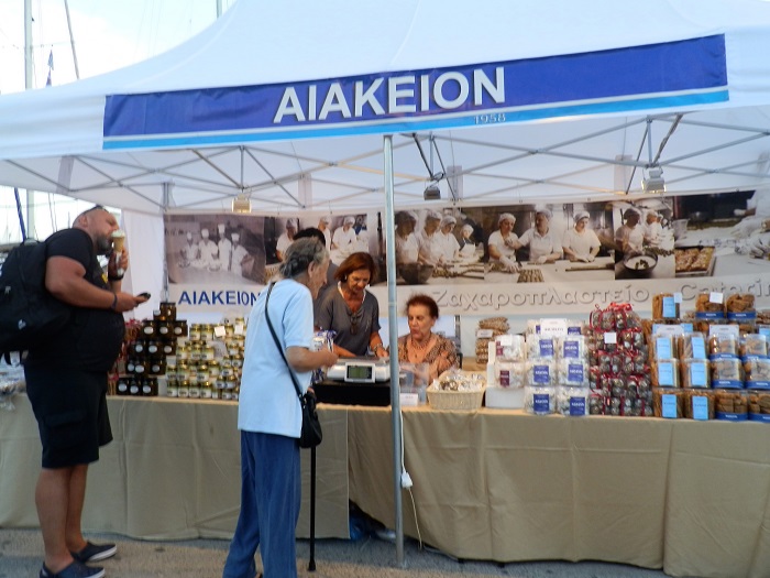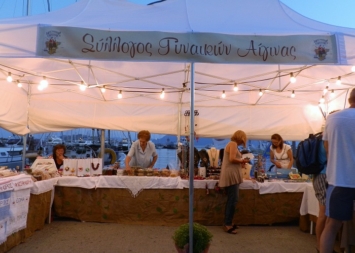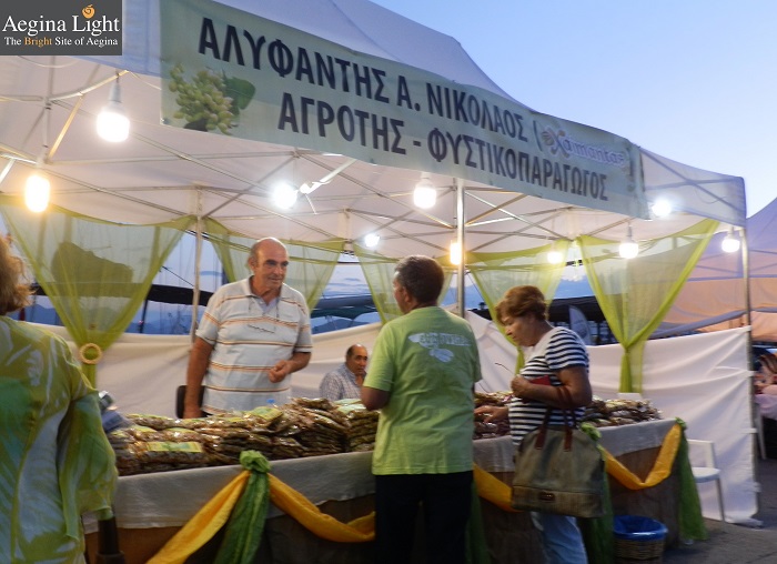 Το παραλιακό μέτωπο της πόλης της Αίγινας, από τα εκδοτήρια μέχρι την Παναγίτσα, ντύθηκε με τα λευκά περίπτερα των εμπόρων, γεμάτα προϊόντα που παράγονται στην Αίγινα και πολύ φιστίκι Αιγίνης σε όλες τις γευστικές μορφές του αλλά και σε διακοσμητικές.