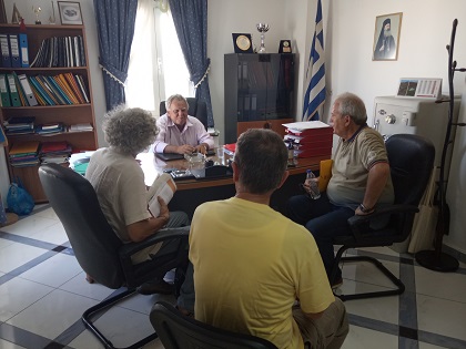 Κατόπιν, πραγματοποιήθηκε συνάντηση με το δήμαρχο Αγκιστρίου, ο οποίος με τη σειρά του ανέφερε τα προβλήματα που αντιμετωπίζει το νησί. Η αντιπροσωπεία του ΚΚΕ ενημερώθηκε για τα έργα αφαλάτωσης του νερού, για το πρόβλημα των απορριμμάτων, καθώς το νησί δεν διαθέτει ΧΥΤΑ και τα λήμματα στέλνονται στο δήμο Φυλής και για το ότι το νησί έχει υπαχθεί στο ΤΑΙΠΕΔ στο σύνολό του, με την αιτιολογία ότι καλύπτεται κατά 85% από δασική έκταση. Επίσης, ο Δήμος απασχολεί σήμερα μόλις 2 εργαζομένους, ενώ αναμένει 2 ακόμα που θα προσληφθούν με 8μηνες συμβάσεις, αριθμός ο οποίος δεν μπορεί να εξυπηρετήσει τις ανάγκες του νησιού. Το γυμνάσιο-λύκειο του Αγκιστρίου λειτουργεί συστεγασμένο σε κοντέινερ(!!), ενώ δεν υφίσταται παιδικός σταθμός, παρά μόνο βρεφονηπιακός. Ο δήμαρχος ανέφερε στην αντιπροσωπεία του ΚΚΕ ότι στο νησί υπάρχει μόλις ένας γιατρός, όπου τα έξοδά του καλύπτονται από το Δήμο, ενώ τα υπόλοιπα περιστατικά αντιμετωπίζονται είτε από το Κέντρο Υγείας της Αίγινας είτε με τη μεταφορά των ασθενών στην Αθήνα με θαλάσσιο ταξί, όπου τα έξοδα πληρώνονται από τον ασθενή!