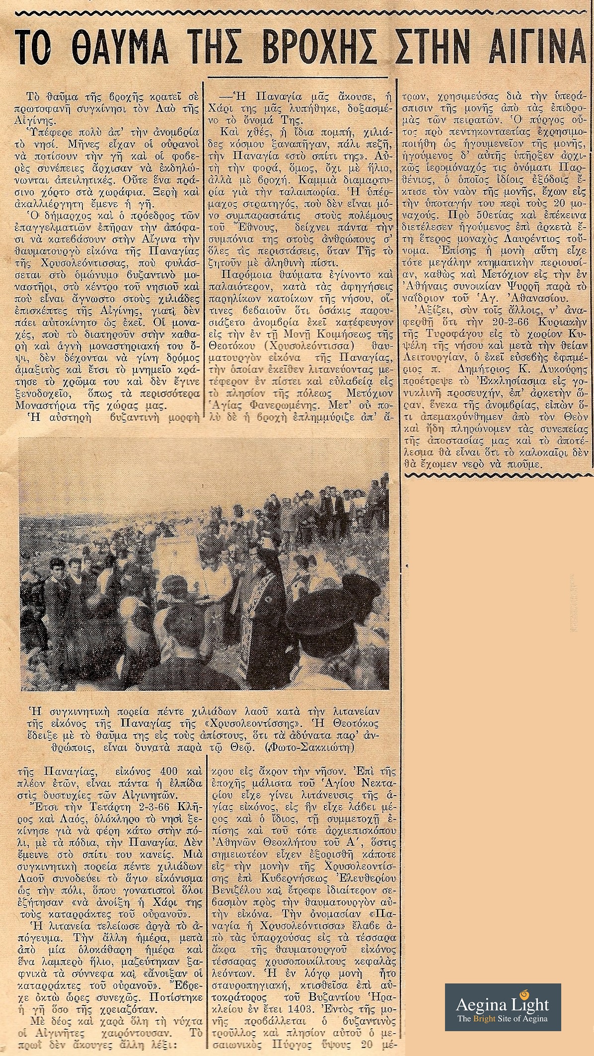 Άρθρο από εκκλησιαστική εφημερίδα του 1966, από λιτανεία της εικόνας με συνοδεία 5.000 κατοίκων, στις 2-3-’66 λόγω ανομβρίας: