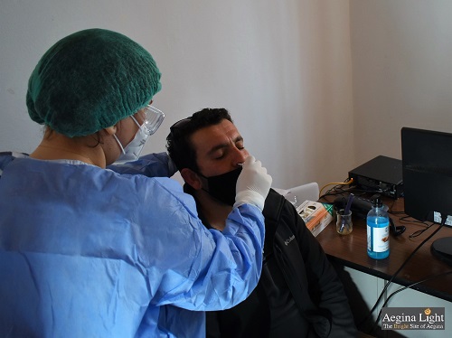 Τα rapid tests έχουν διατεθεί από το δήμο Αίγινας και έγιναν από την ιατρό του Κέντρου Υγείας Αίγινας κ. Βασιλική Γουρζή και προσωπικό του Κ. Υ..