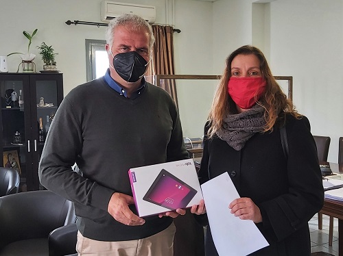 Τα σχολεία του νησιού θα λάβουν επί συνόλου εκατόν είκοσι δύο τάμπλετ, τα οποία στην συνέχεια θα παραδοθούν στους μαθητές προς χρήση στο πλαίσιο παρακολούθησης της εξ αποστάσεως εκπαίδευσης λόγω αναστολής της δια ζώσης λειτουργίας των σχολικών μονάδων.