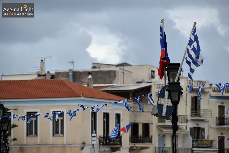 Γενικός σημαιοστολισμός και φωταγώγηση όλων των Δημοσίων και Δημοτικών κτιρίων, Νομικών Προσώπων, Τραπεζών, καταστημάτων και οικιών του Νησιού, επίσης των πλοίων και όλων των ελλιμενισμένων σκαφών στα λιμάνια της Αίγινας, Σουβάλας, Πέρδικας και Αγ. Μαρίνας.
