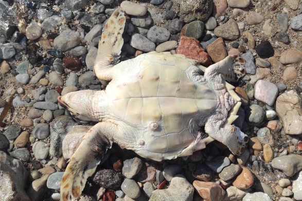 Μια νεαρή θαλάσσια χελώνα βρέθηκε νεκρή στην παραλία της Κολώνας, από κολυμβητές.
