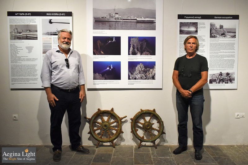 Τα πηδάλια του αντιτορπιλικού “Ύδρα” που βυθίστηκε από τους Γερμανούς στις 22-4-1941 έξω από τις Λαγούσες νήσους, εκτέθηκαν για πρώτη φορά στο κοινό, στην αίθουσα του Ιστορικού Λαογραφικού Μουσείου Αίγινας, κατά τη διάρκεια της έκθεσης του ερευνητή Δημήτρη Γκαλών με τίτλο «Τα Ιστορικά Ναυάγια της Αίγινας 1941-42».