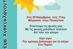 ΕΙΔΗΣΕΙΣ • ΟΙΚΟΛΟΓΙΑ • ΣΥΝΟΜΙΛΙΕΣ Δράση των Φίλων της Αίγινας κατά της κλιματικής αλλαγής 14/11/2015Add Comment